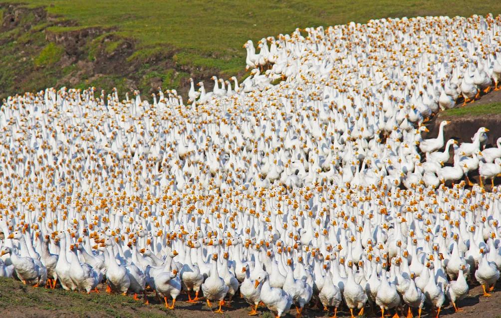 清晨的第一缕阳光洒在村庄上,小明揉了揉惺忪的睡眼,便急忙奔向鹅群,他一边给鹅儿们喂食,一边观察着鹅市的价格动态,村里的老人们常说:“鹅价如天气,时涨时落。”小明发现大鹅的价格又上涨了一些,他心中暗自高兴,鹅价的上涨意味着家里的收入又增加了一份保障。
