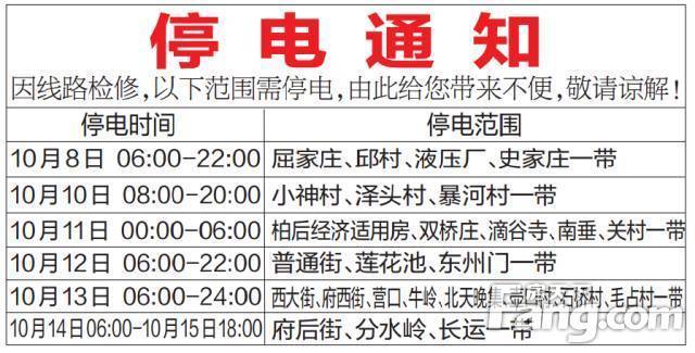 停电范围与时间安排:具体停电范围和时间已在后续详细阐述,请受影响区域的市民提前做好准备工作。