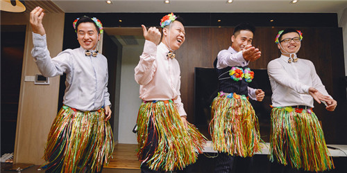 5、趣味惩罚与互动结合:设计一些惩罚环节时融入互动元素,比如让新郎邀请宾客一起参与特定动作的模仿或舞蹈挑战,完不成任务的新郎将接受小惩罚,增加现场欢乐氛围。