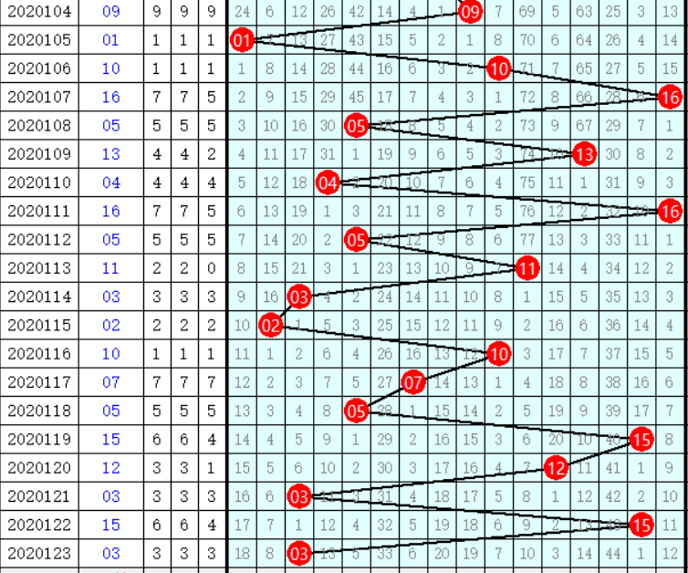•   时间周期规律:分析不同时间段(如周、月)内的号码走势,看看是否存在一定的周期性。
