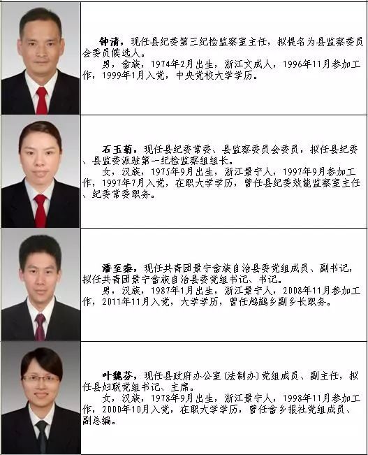 景宁县最新提拔名单中,涉及多个领域的优秀人才,他们在各自的岗位上表现出色,为景宁县的发展做出了杰出贡献,这些被提拔的干部,有的是长期在基层一线工作的“老将”,有的是年轻有为的新生力量,他们的共同特点是:政治立场坚定、工作能力强、群众基础好。