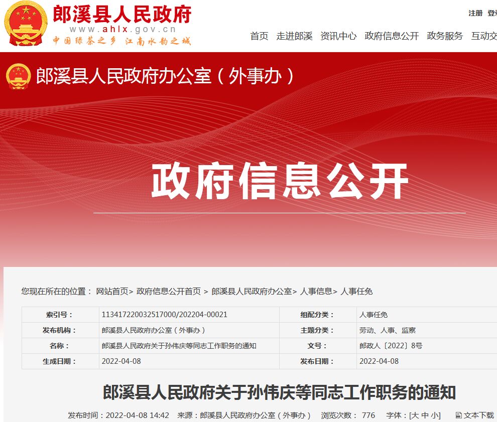 郎溪最新人事任免及干部任命公示发布