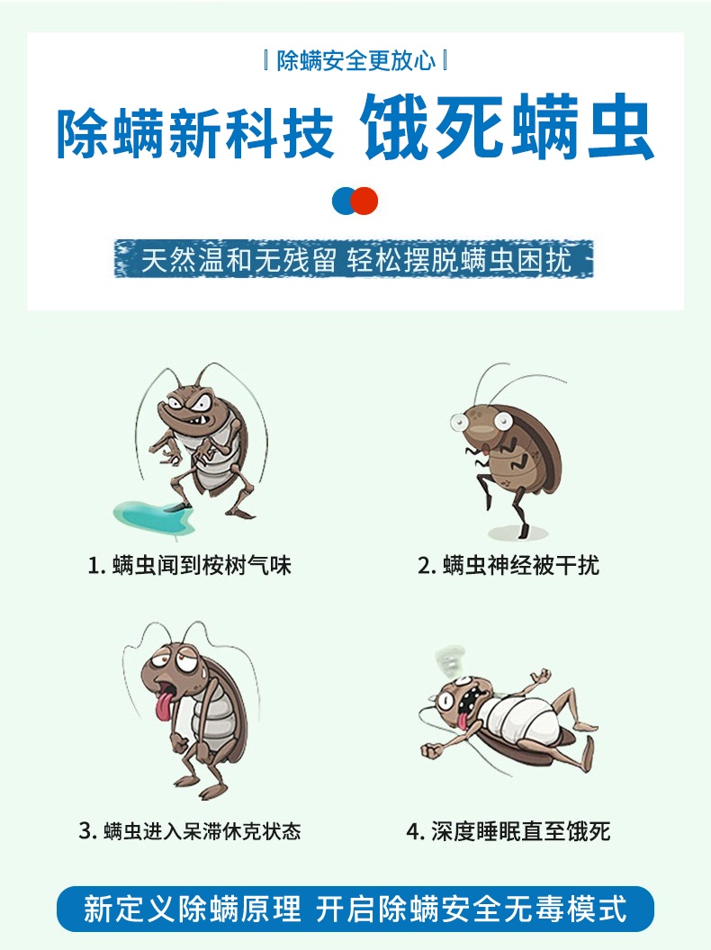 (4)持久性:新型杀螨药持效时间较长,能持续控制螨虫滋生。